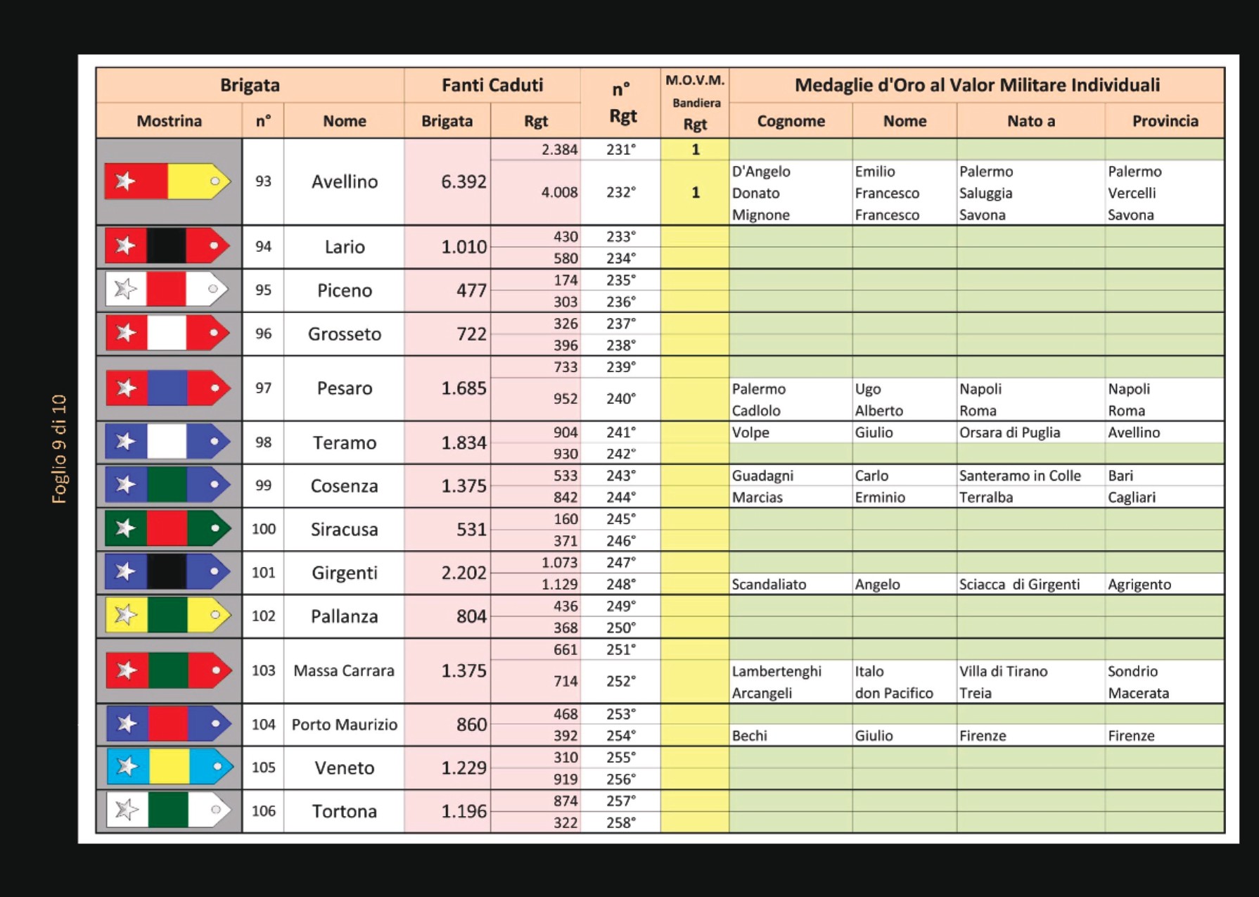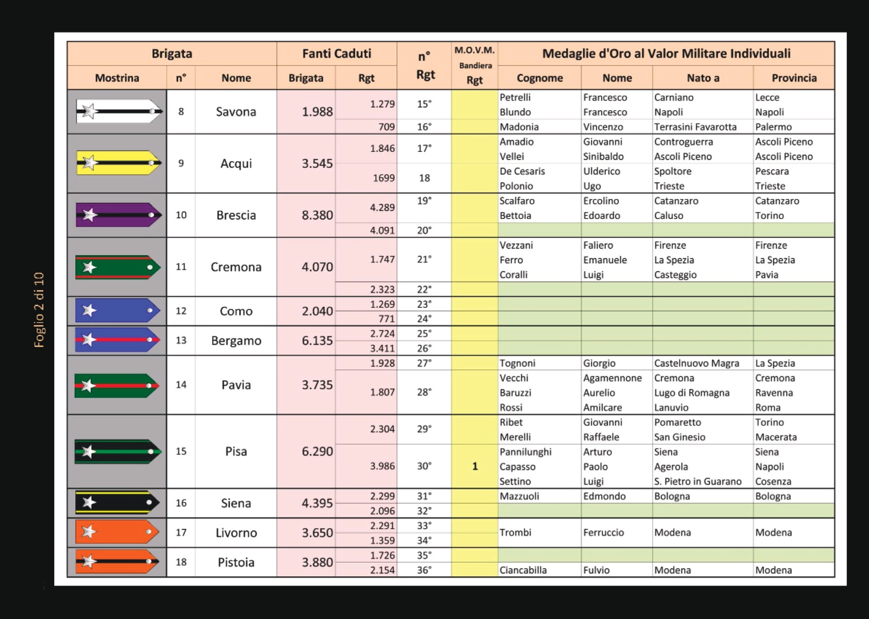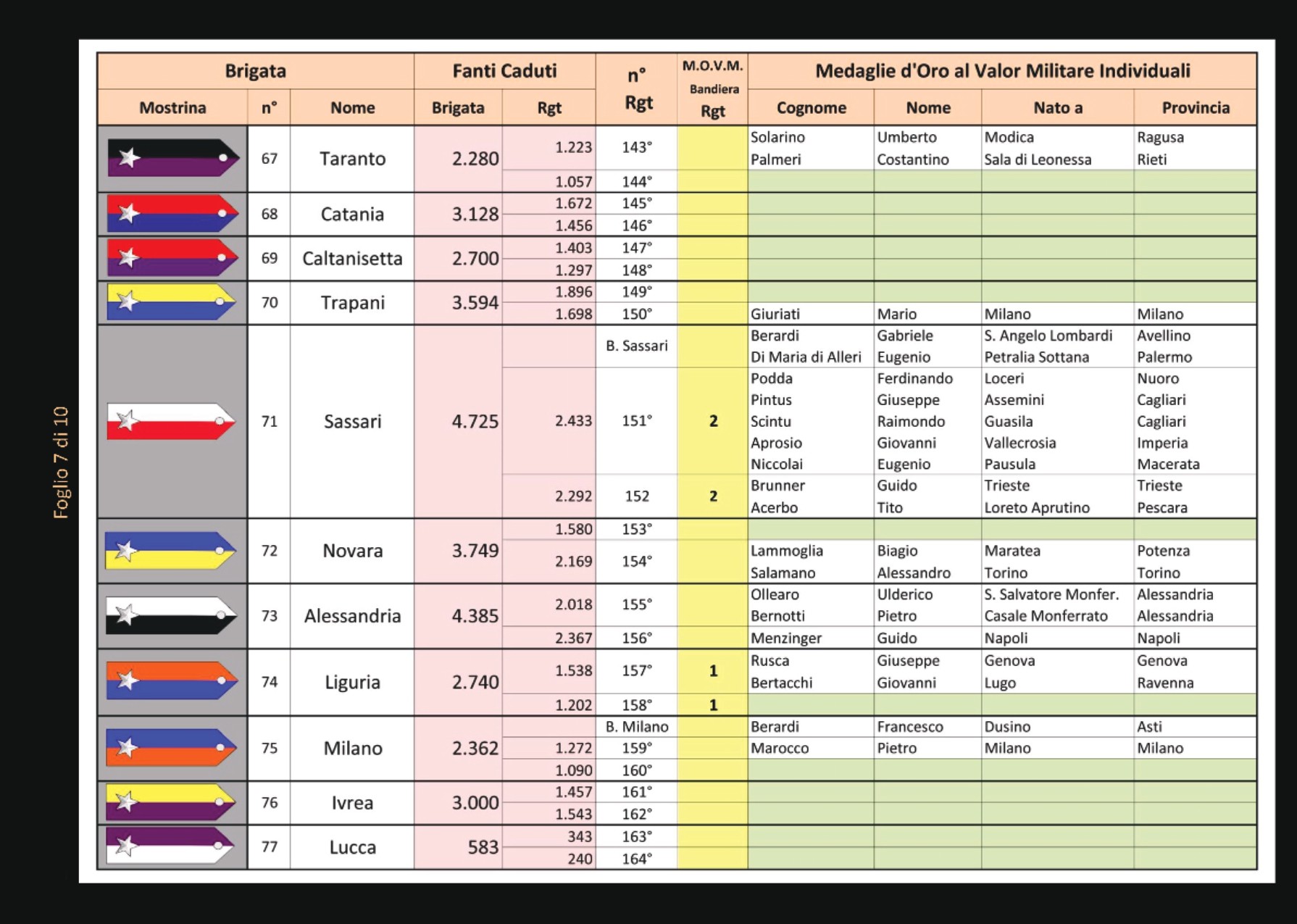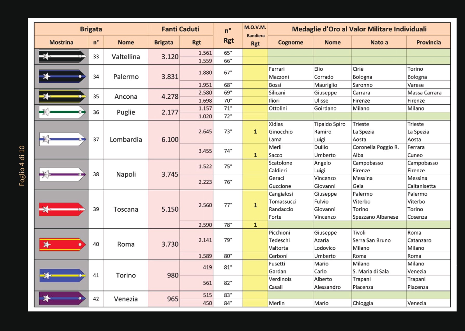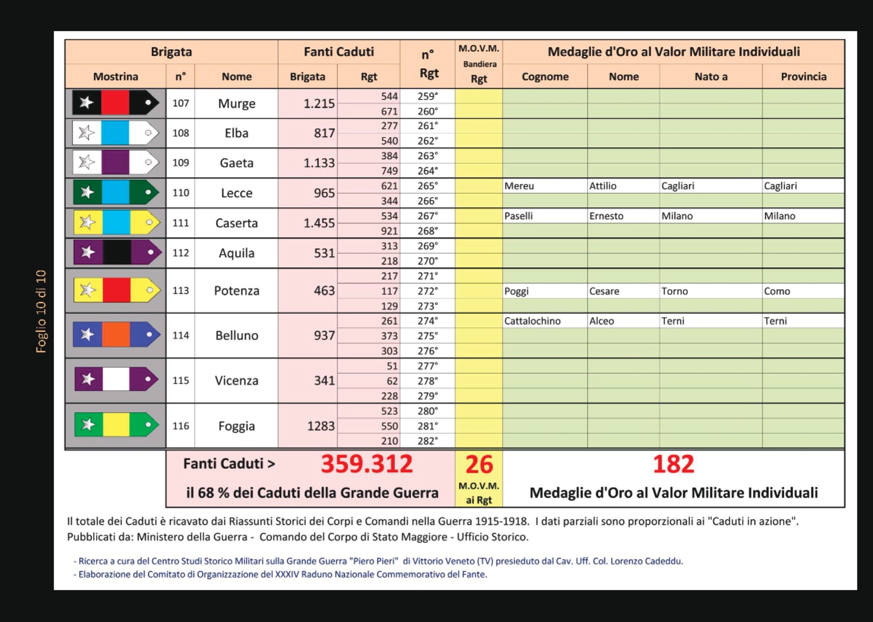 Le 116 BRIGATE della GRANDE GUERRA