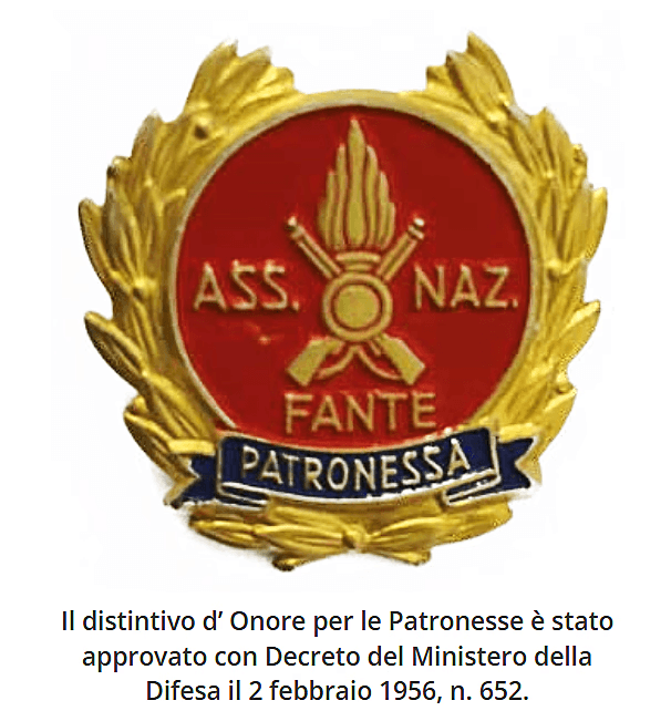 Le Patronesse sono la componente femminile, non militare, di supporto e collaborazione con gli Organi dell’Associazione. Possono farne parte Signore che dimostrano attaccamento al Sodalizio, di cui condividono anche operativamente le finalità. Statuto dei Fanti.