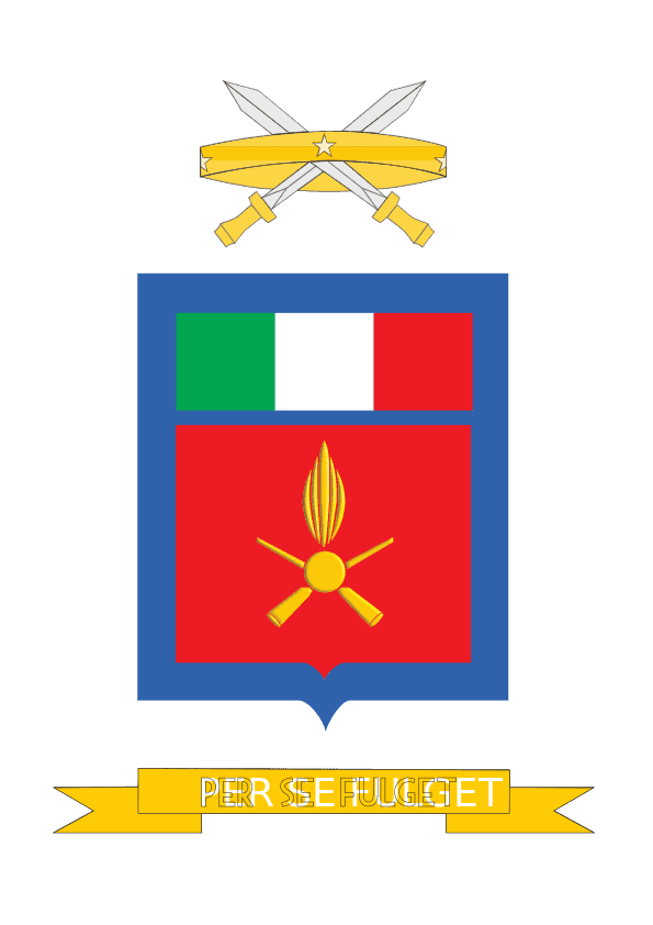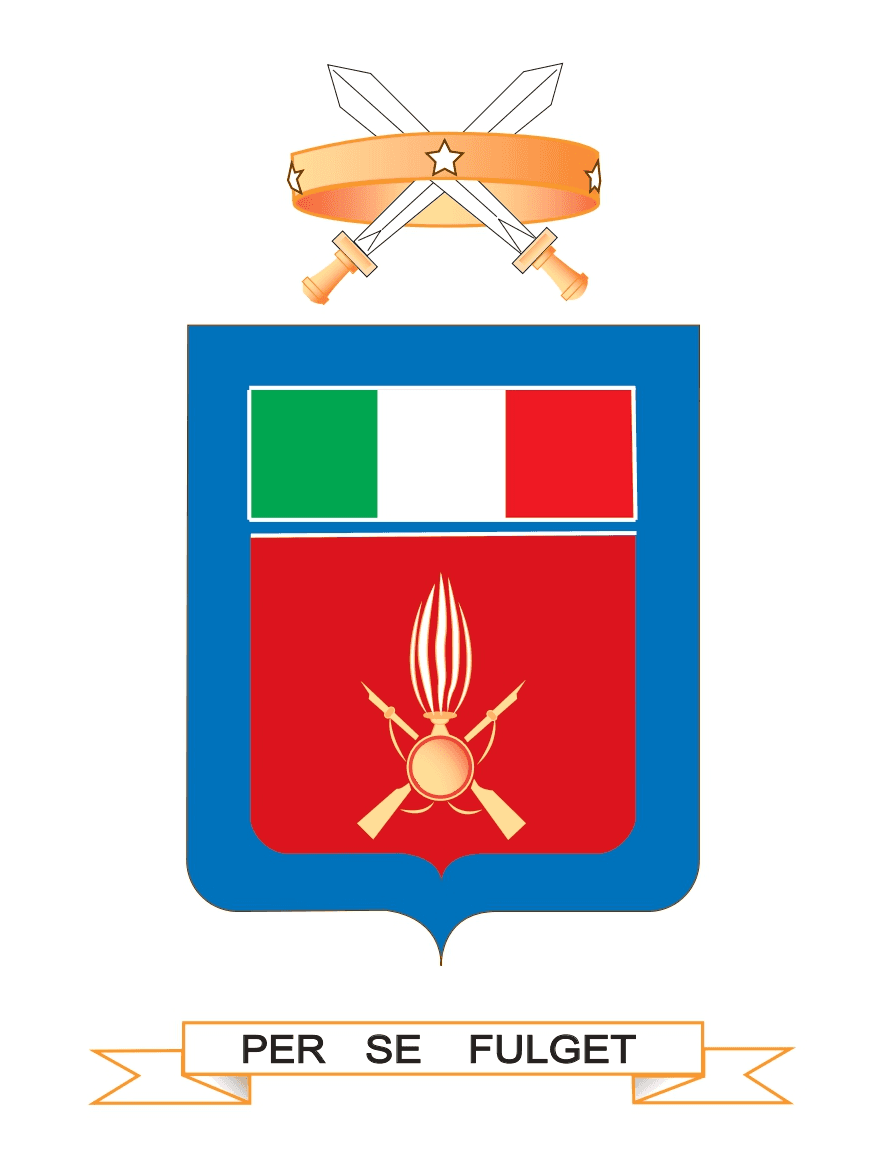 Il motto (allusivo all’Arma) su lista bifida d’argento coi caratteri capitali di nero: PER SE FULGET (di per sé risplende) perpetua il valore della Fanteria Italiana che nell’avversa e nella buona fortuna, scrisse in ogni tempo con inesausta fede, la sua storia più grande che è storia di tutto un popolo.